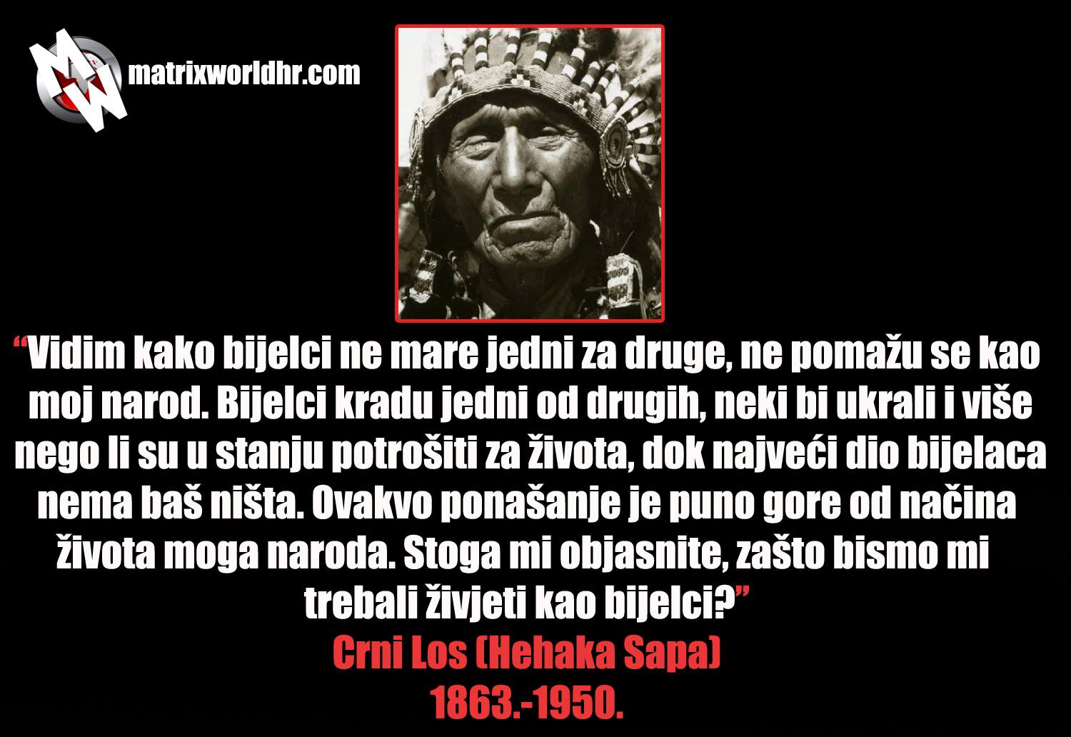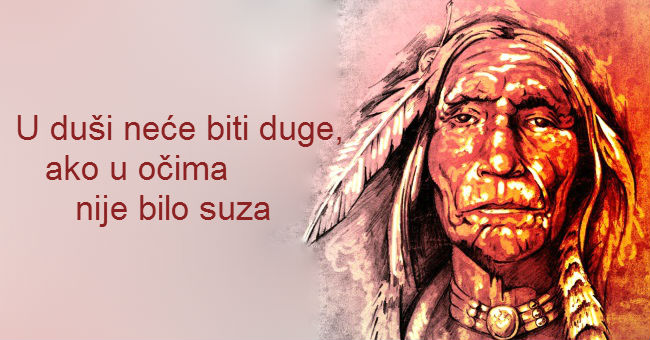 ![]() Uvijek pozdravi prijatelja kad ga sretneš, pozdravi čak i stranca na osamljenom mjestu. Poštuj sve ljude i ne klanjaj se nikome. (Poglavica Tecumseh, Shaumee) Prvi mir, koji je najvažniji, je onaj koji dolazi u dušu čovjeka kad shvati svoju vezu, svoje jedinstvo s univerzumom i svim njegovim moćima, i kad shvati da se u središtu univerzuma nalazi Veliki Duh i da je to središte svugdje, da se nalazi u svakom od nas. (Crni Los, Oglala Sioux) Iz Velikog Duha, Velike Tajne, dolazi sva snaga. Veliki Duh daje svetom čovjeku mudrost, moć liječenja i izrade svetih čini. Čovjek zna da je sve ljekovite biljke dao Veliki Duh; zato su svete. Tako je i bizon svet, jer je dar Velikog Duha. (Poglavica Željezna Ploča (Maza Blaska), Oglala Sioux) Naša zemlja, naša vjera i naš život su jedno. Na ovoj smo zemlji lovili jelene, losove, antilope, bizone, zečeve, purane. Od ove smo zemlje dobili stabla i kamenje za naše kuće i kive . (Molitva Hopija) Bio sam na kraju zemlje. Bio sam na kraju voda. Bio sam na kraju neba. Bio sam na kraju planina. Nisam pronašao ništa što mi nije prijatelj. (Navajo izreka) Hoćeš li ikada početi shvaćati značenje tla pod svojim nogama? Sve je sveto – od zrnca pijeska do planine. Na ovoj zemlji jučer i sutra postoje vječno. Mi, domoroci, čuvari smo ovih svetih mjesta. (Peter Plavi Oblak, Mohausk) Sveta Majko Zemljo, drveće i čitava priroda svjedoci su tvojih misli i djela. (Winebago) Veliki Duh (Wakan Tanka) je u svim stvarima: on je u zraku koji udišemo. Veliki Duh je naš otac, a zemlja je naša majka. Ona nas hrani; ono što stavimo u nju, ona nam vraća. (Veliki Grom (Bedagi), Wabanaki Algonquin) Poštovanje znači slušati dok se svakoga ne sasluša i ne shvati; tek je tada moguća ravnoteža i harmonija -cilj indijanske duhovnosti. (Poglavica Dave, djed Crvenog Psa, Oglala Sioux) Mi smo naučeni vjerovati da Veliki Duh vidi i čuje sve i da nikad ne zaboravlja: da će poslije ovoga ovdje dati svakom čovjeku duhovni dom prema njegovim zaslugama… U ovo vjerujem ja i svi u mom narodu. (Poglavica Joseph (Heinmot Tooyalaket), Nez Perce) Ako razgovaraš sa životinjama, i one će razgovarati s tobom i tako ćete se međusobno upoznati. Ako ne razgovaraš s njima, nećeš ih upoznati, a ono što ne poznaješ, toga se bojiš. Ono čega se bojiš, to uništavaš. (Poglavica Dan George, Salish) Ne postoji smrt. Postoji samo promjena svjetova. (Poglavica Seattle, Suquamish) Život nije odijeljen od smrti. Samo izgleda tako. (Crne Noge) Kad dođe vrijeme umiranja, ne budi poput onih čija su srca ispunjena strahom od smrti, pa kad done njihovo vrijeme, oni plaču i mole za još malo vremena kako bi još jednom preživjeli svoj život na drugačiji način. Pjevaj svoju pjesmu smrti i umri kao junak koji se vraća kući. (Poglavica Aupumut, Mohican) S obzirom da ste ovdje stranci, trebali biste se prilagoditi običajima naše zemlje, a ne nametati nam svoje. (Poglavica Wicomessea) Bilo je vrijeme kad su naši ljudi prekrivali cijelu zemlju kao što valovi na vjetrom uzburkanom moru prekrivaju dno pokriveno školjkama. Ali to vrijeme je davno prošlo zajedno sa slavom sada zaboravljenih plemena. Neću žaliti za našom preranom propašću, niti predbacivati mojoj bljedolikoj braći što su je ubrzali. (Poglavica Seattle, Suquamish) Danas je dobar dan za boriti se, danas je dobar dan za umrijeti. (Poglavica ludi Konj, Oglala Sioux) Naši životi u rukama su Stvoritelja. Odlučni smo u obrani naše zemlje, a ako je njegova volja, na njoj želimo ostaviti naše kosti. (Poglavica Tecumseh, Shaivnee) Ja sam Shawnee. Moji su preci bili ratnici. Njihov sin je ratnik. Od njih uzimam samo svoje postojanje. Od svog plemena ne uzimam ništa. Sam sam izgradio sebe ovakvim kakav jesam. (Poglavica Tecumseh, Shatvnee) Sve na zemlji ima svoju svrhu, svaka bolest biljku koja je liječi, a svaki čovjek poslanje. Ovo je indijansko učenje o postojanju. (Žalosna Golubica (Christine Quintasket), Salish) Indijanci nisu imali pisane zakone. Običaji koji su se prenosili s koljena na koljeno bili su jedini zakoni koji su ih vodili. Svatko se mogao ponašati drugačije od onoga što se smatralo ispravnim ako je tako htio, ali bi ga zbog toga narod osudio… Taj strah od osude djelovao je kao moćna spona koja povezuje sve u jednu društvenu, časnu cjelinu. (Poglavica George Copway, Ojibuia) Shvatio sam da u bilo kojem velikom pothvatu nije dovoljno da se čovjek oslanja samo na sebe. (Usamljeni Čovjek, Teton Siotvc) Život je poput svjetla krijesnice u noći, daha bizona zimi. (Crne Noge) Kada izgubiš ritam bubnja Velikog Duha, ostao si bez mira i ritma života. (Cheyenne) "Ne plaši se da plačeš. To će osloboditi tvoj um od tužnih misli." - Hopi ""Bolje je imati manje groma u ustima i više munja u ruci." - Apači "Sve biljke su naša braća i sestre. Oni pričaju sa nama i ako slušamo, možemo da ih čujemo." - Arapajo "Reci mi i zaboraviću. Pokaži mi, i možda se neću setiti. Uključi me, i razumeću." - Nepoznato pleme "Oni koji ležu sa psima, bude se sa buvama." - Blekfut "Kad si se rodio, plakao si i svet se radovao. Živi život tako da, kada umreš, svet plače a ti se raduješ." - Čiroki "Naš prvi učitelj je srce." - Čejen "Nema smrti, samo promene svetova." - Duvamiši "Ne možeš probuditi onoga koji se pravi da spava." - Navaho "Svi snovi se pletu iz iste mreže." - Hopi Traži sebe, kroz sebe. Ne dozvoli drugima da upravljaju tvojim putem. To je tvoj put i samo tvoj – drugi mogu ići s tobom, ali ne mogu ići umjesto tebe. Budi tolerantan prema onima koji su se izgubili na putu Neznanje, ljutnja, ljubomora i pohlepa izlaze iz izgubljene duše. Moli se da pronađu rukovođenje. Ne uzimaj što nije tvoje, bilo od neke osobe, zajednice, divljine ili nečije kulture. Nije zarađeno ni dato. Nije tvoje. Ustani sa suncem i pomoli se. Moli se sam. Moli se često. Veliki Duh će slušati, ti trebaš samo govoriti.2. Budi tolerantan prema oni